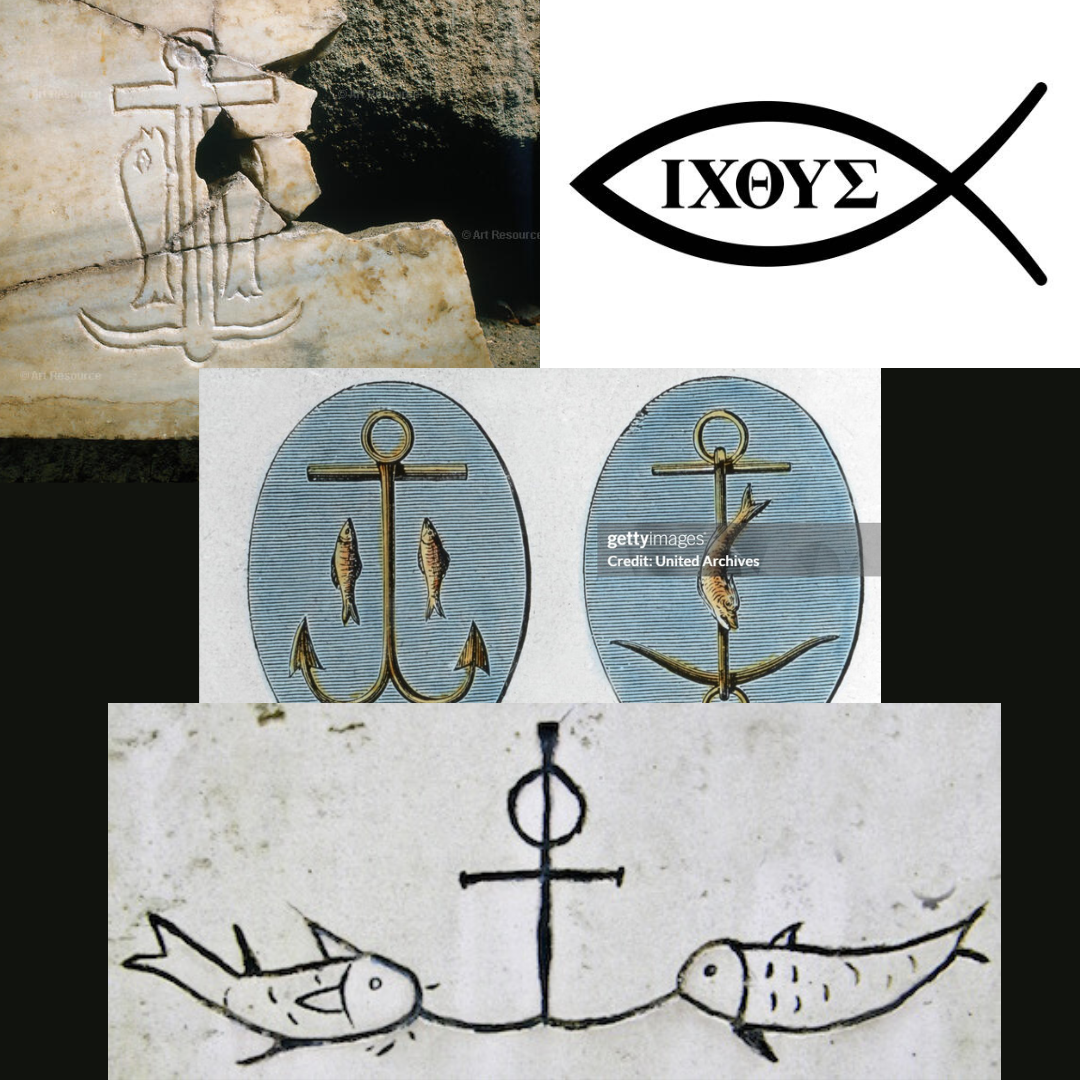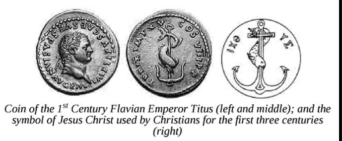 One of the early symbology used by the Yehuborim forces in ritualizing warfare against the Potential people of the Gods and assimilating this into their creation of Christianity has been known as the Fish and Anchor. This symbology further as Dolphin, Fish, Human and Anchor in different permutations has been internalized by the Yehuborim movement as a new identity and direct basis for propaganda, forming later into the "Avatar of Age of Pisces" concept that Christianity used directly for propaganda and ideology. The cross came much later and the early Christians were the product of Yehuborim continuous effort of hybridization and identity forming, of course, not based on any actual "messianic" or biblical event occurring, being fictious.