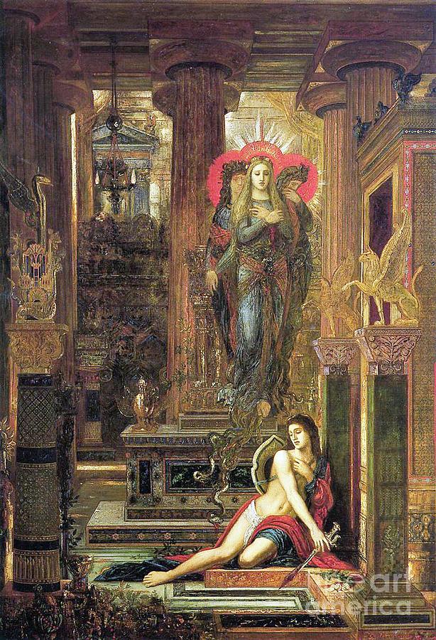 I just had to share these paintings with you all, and these are just SOME of the works of art from this particular artist. I had never had the pleasure of seeing this artist's work before today, and I am in complete and utter awe. The website states about the artist, "Gustave Moreau was French symbolist painter, whose work was inspired by elements of Neoclassicism and Romanticism. He often painted mythological figures against highly detailed backdrops to evoke a sense of awe-inspiring grandeur." He lived from 1826 to 1898 and produced over 15,000 paintings throughout his lifetime. (WOW, that's incredible)