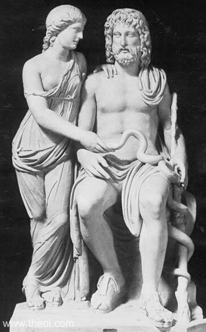 The original name of Asclepius was Hepius and gained His name by healing Ascles, a king of Epidaurus. His name also relates to the symbolism: