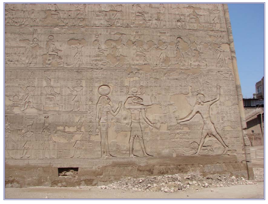 Domitian with Khnum. The inscription of this scene typically reads, “The son of Re (Domitian Augustus), beloved of Khnum-Re, Lord of Esna.”