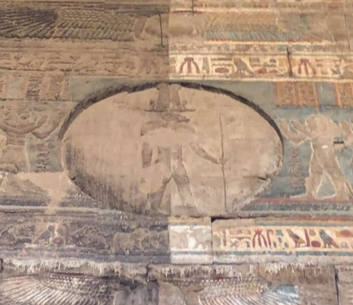 Khnum is depicted in ancient Egyptian reliefs within a circle, surrounded by all species, beings, and Gods, as seen in this relief at the Temple of Esna: