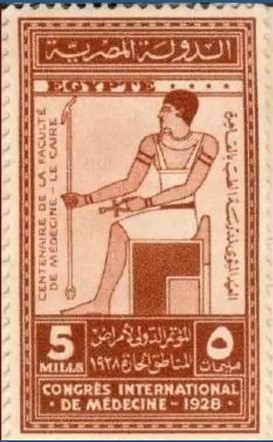 Finally, I would like to add an Egyptian stamp from 1928, on which Imhotep is honored as the god of medicine.