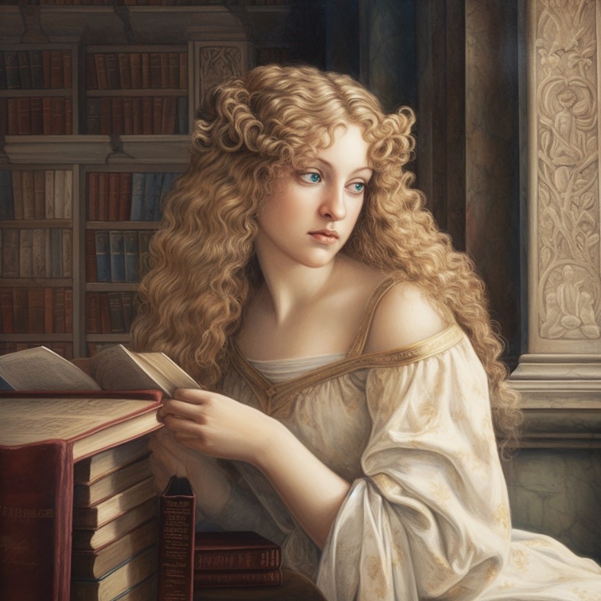 This resting quality is part of why She is related to books and documents, being a Patroness of libraries, archives and other kinds of institutions concerned with what has been written down and symbolically becomes memory in reserve beyond the view of perception. One of her names is She Who is Foremost of the Library. All realms of literature are also under Her command.