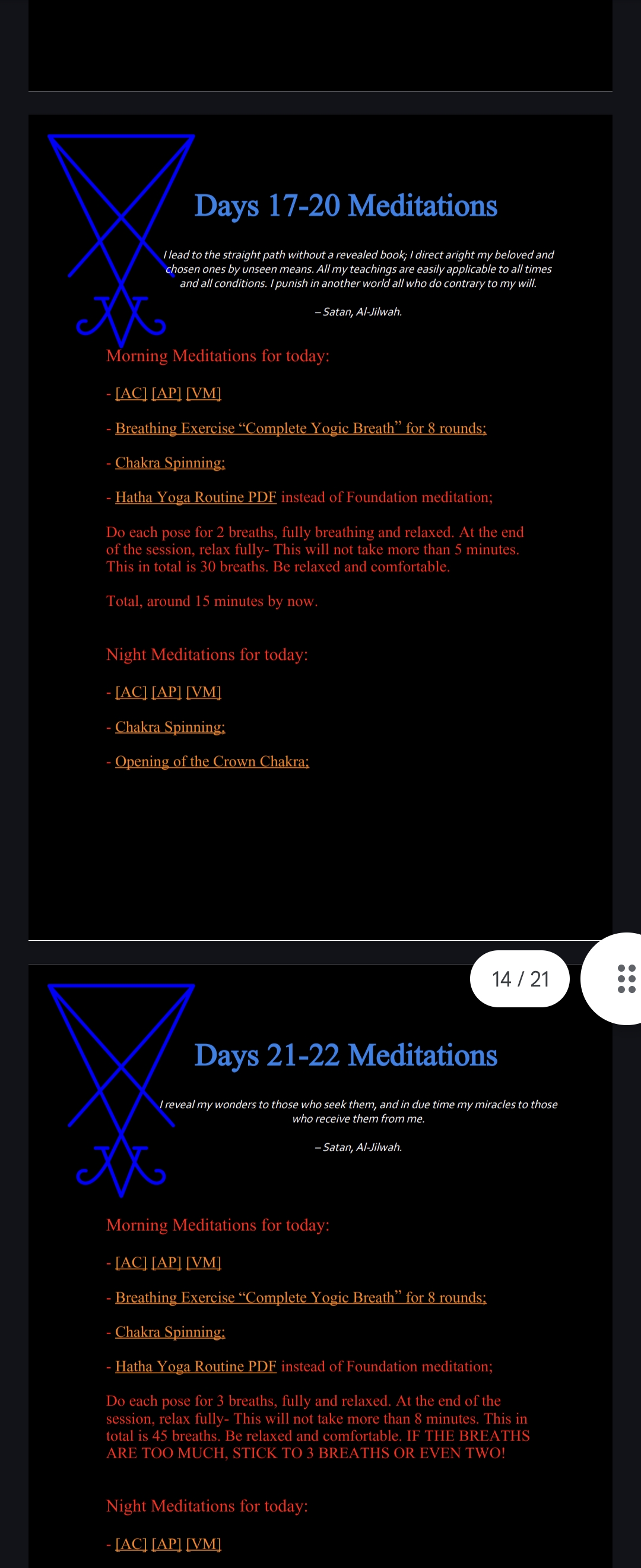 When you get to the "opening the crown chakra" part(days 17-20) when the link is pressed the page says to open the 6th first. I was just wondering could someone correct this in the pdf ? As to keep up with the flow and schedule of the 40 days of power. Thank you all.